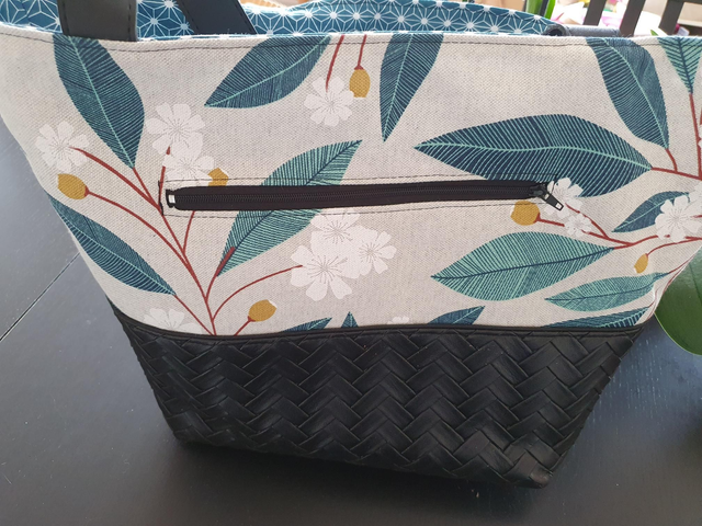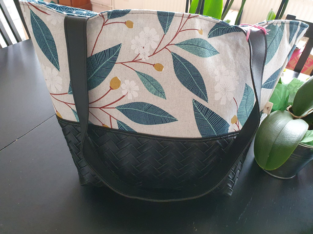 Sac à main en simili tressé et lin